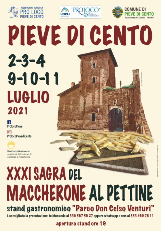 Per due week end, da venerdì 2 a domenica 4 e da venerdì 9 a domenica 11 luglio 2021, il parco Don Celso Venturi ospiterà la più tradizionale delle sagre pievesi a cura di Pro Loco Pieve di Cento!