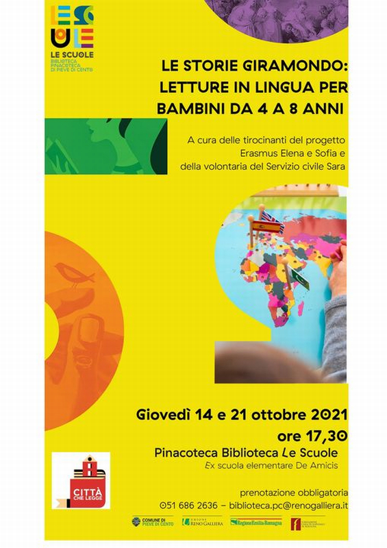 Giovedì 14 e giovedì 21 ottobre alle 17.30, letture in lingua inglese, francese e spagnola presso la biblioteca de Le Scuole di Pieve di Cento.