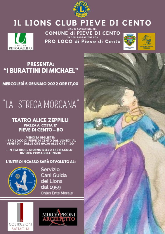 Il Lions club di Pieve di Cento in collaborazione con la Proloco di Pieve di Cento presenta lo spettacolo di burattini:
