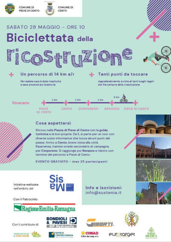 Pieve di Cento con la guida turistica e le proprie bici. Da lì, si parte per un tour con diverse soste informative che tocca alcuni punti del paese. Arrivo a