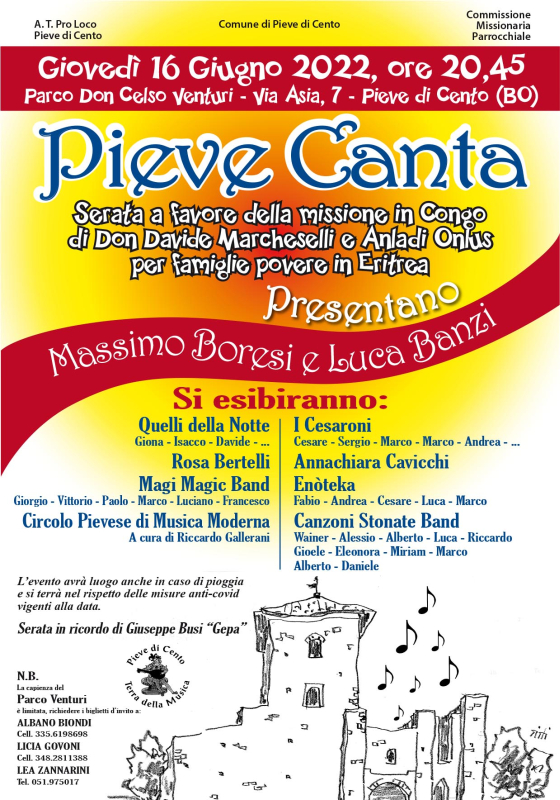 Giovedì 16 giugno si terrà al Parco Venturi in via Asia n.7 alle ore 21.00 l'evento Pieve Canta.