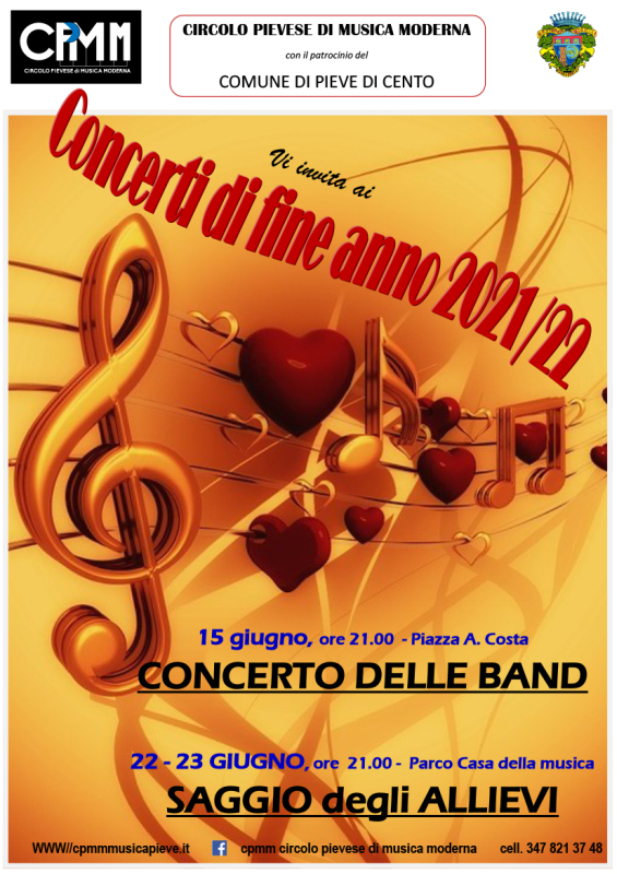 Mercoledì 22 e Giovedì 23 giugno dalle ore 21.00 si svolgerà il Saggio allievi a cura del Circolo Pievese di Musica Moderna.