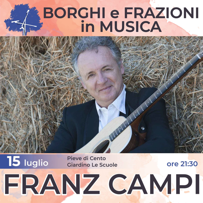 L'evento Borghi e Frazioni in musica, concerto Franz Campi si terrà venerdì 15 luglio alle 21.30 presso il Giardino "le Scuole",via M.Rizzoli n.2