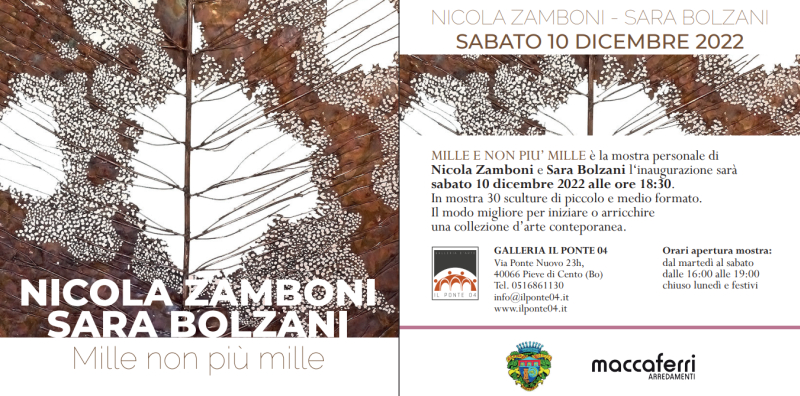 Sabato 10 dicembre alle 18.30 si terrà nella Galleria il Ponte la mostra "Mille e non più mille" di Nicola Zamboni e Sara Bolzani.