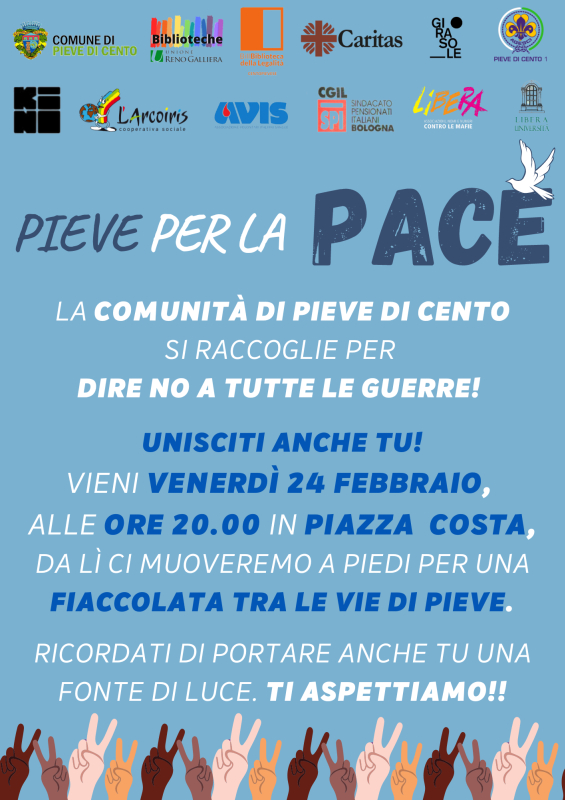 La comunità di Pieve di Cento si raccoglie per dire NO a tutte le guerre! Unisciti anche tu!
