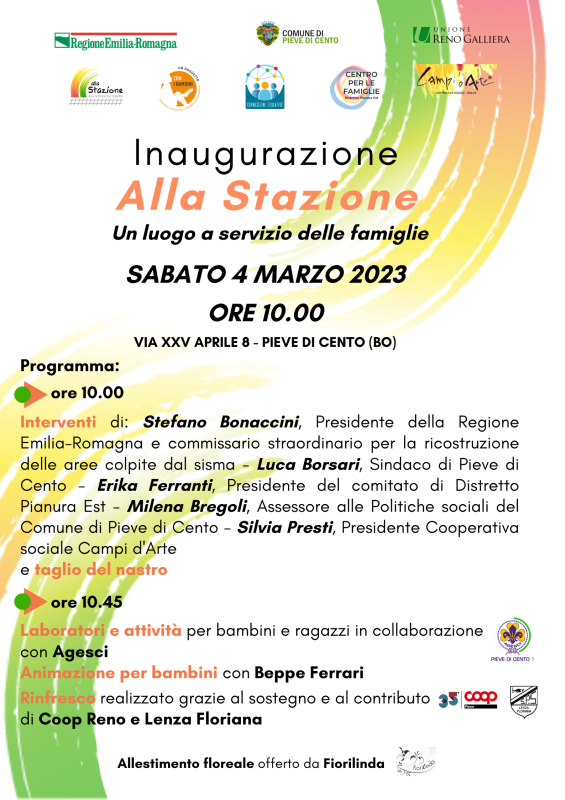 "Con l'inaugurazione del Centro per le Famiglie all'interno dell'ex Stazione, Pieve di Cento vive un giorno bello e importante. Un giorno in cui raggiungiamo un traguardo tanto desiderato. Se ci siamo riusciti è grazie al contributo della Regione nell'ambito della ricostruzione dopo il terremoto e all'ulteriore contributo ottenuto dalla Fondazione "Con i bambini".