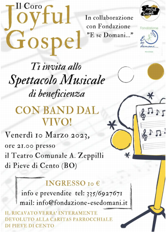 Coro Joyful Gospel, uno spettacolo musicale di beneficenza il cui ricavato sarà interamente devoluto alla Caritas Parrocchiale di Pieve di Cento.