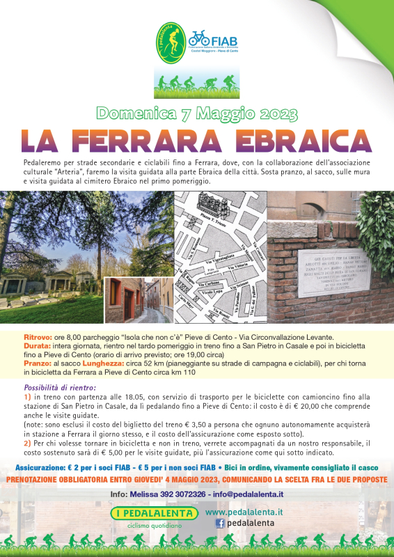 Assicurazione: € 2 per i soci FIAB - € 5 per i non soci FIAB • Bici in ordine, vivamente consigliato il casco