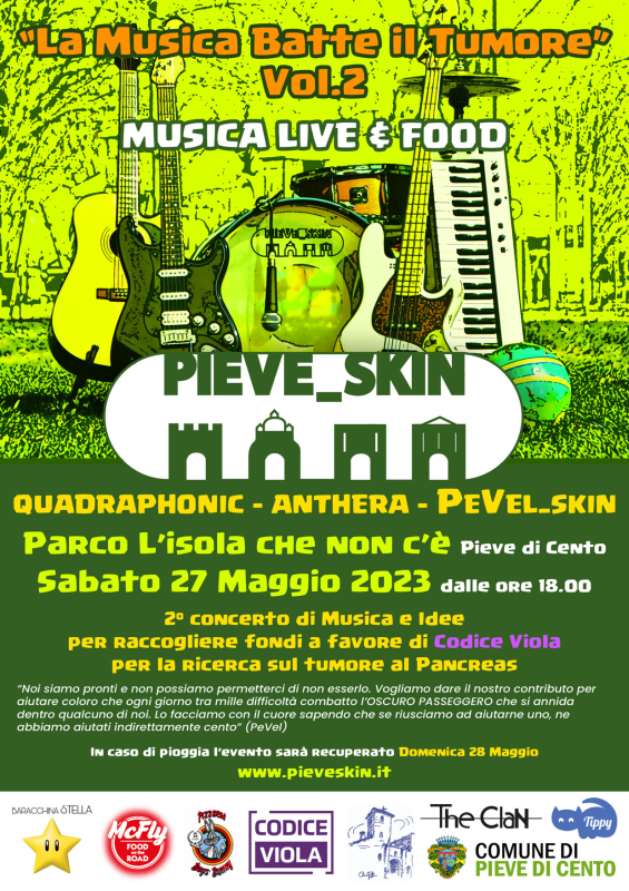 Pieve Skin è un'iniziativa che si terrà il 27 maggio alle ore 18.00 nel parco "Isola che non c'è" per raccogliere fondi a favore di Codice Viola per la ricerca sul tumore al Pancreas.