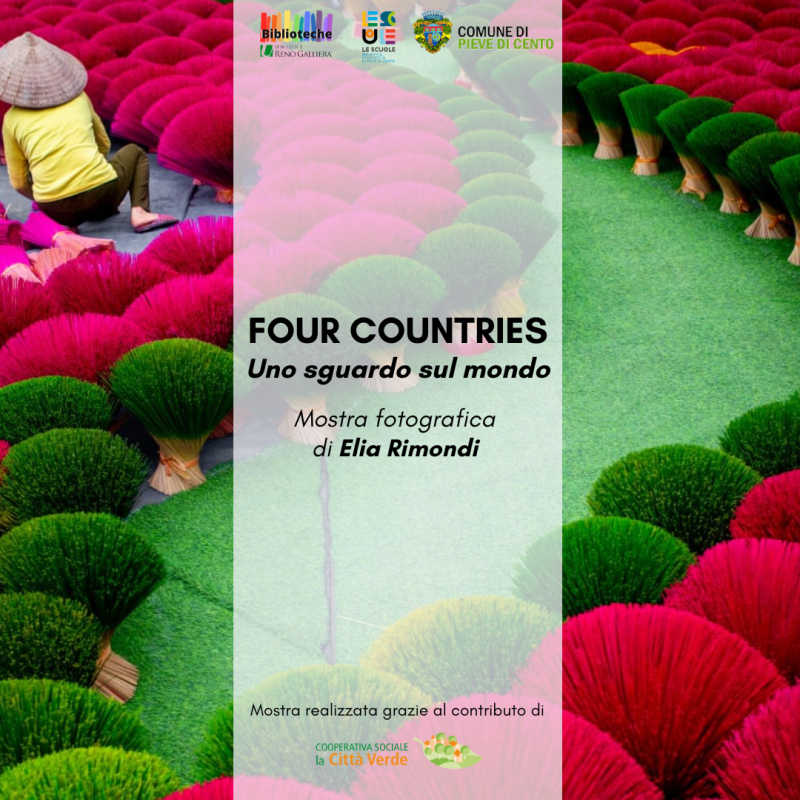 Sabato 7 ottobre alle 11 sarà inaugurata presso la Biblioteca comunale "Le Scuole" di Pieve di Cento la mostra fotografica di Elia Rimondi FOUR COUNTRIES: UNO SGUARDO SUL MONDO.
