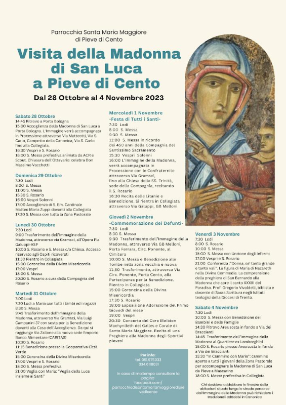 In caso di maltempo consultare la pagina facebook della parrocchia di Santa Maria Maggiore di Pieve di Cento