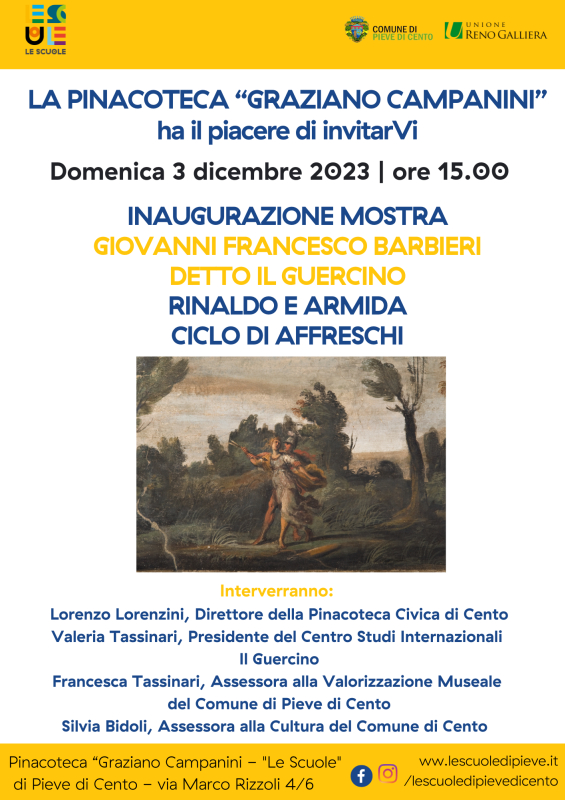 Giovanni Francesco Barbieri detto il Guercino - Ciclo di affreschi di Rinaldo e Armida" presso la Pinacoteca Graziano Campanini di Pieve di Cento, via M. Rizzoli, 4-6.