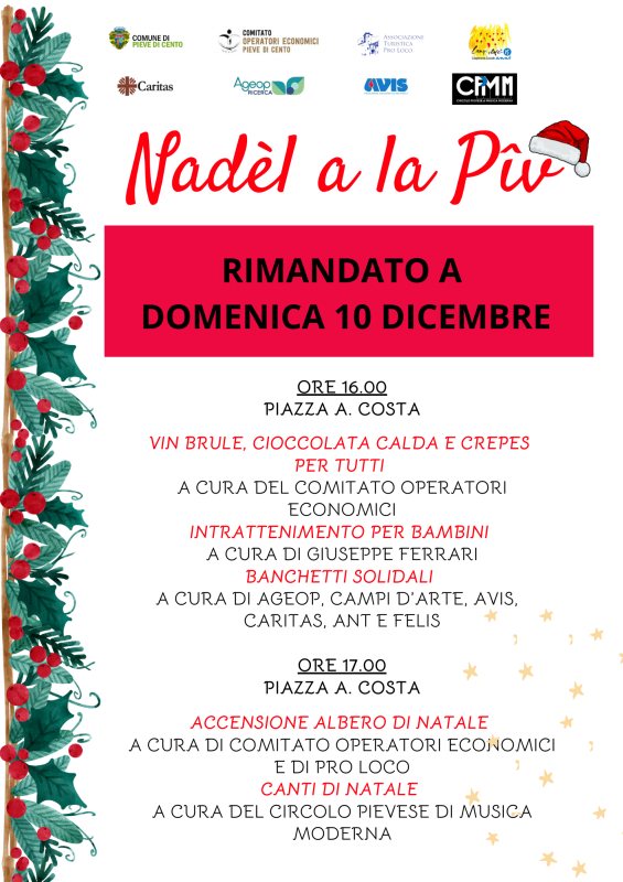 Aggiornamento: si comunica che causa maltempo l'iniziativa è rimandata a domenica 10 dicembre