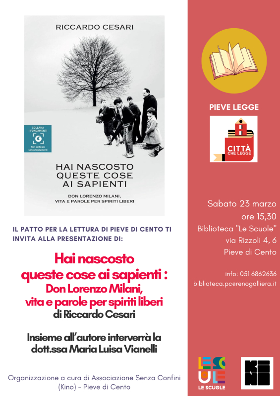 Sabato 23 marzo alle ore 15.30 si terrà la presentazione del libro di Riccardo Cesari, "Hai nascosto queste cose ai sapienti: Don Lorenzo Milani, vita e parole per spiriti liberi" (Giunti, 2023).