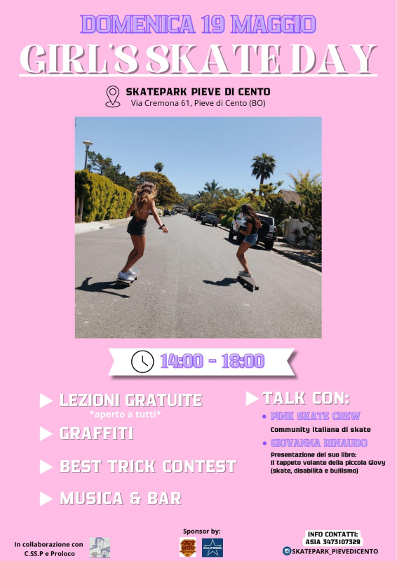 Domenica 19 maggio si terrà il Girl's skate day, una giornata dedicata allo skate femminile.