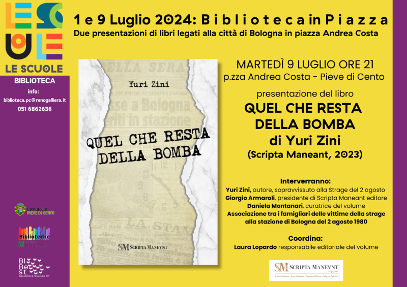 Martedì 9 luglio alle 21.00 la Biblioteca "Le Scuole" di Pieve di Cento, per ricordare il 44° anniversario della Strage del 2 agosto 1980, ospita