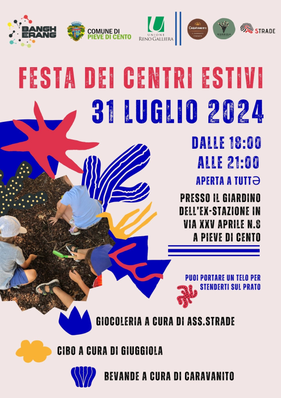Festa dei Centri Estivi organizzata da Bangherang Soc. Coop., con il patrocinio del Comune di Pieve di Cento e dell'Unione Reno Galliera.