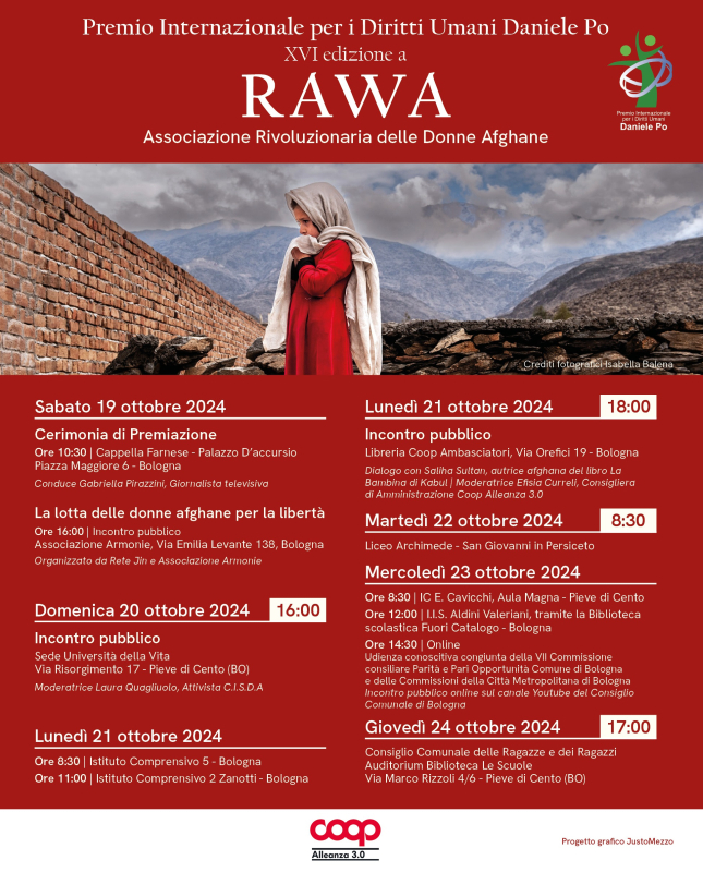 Per l'edizione 2024 del Premio giunta alla 16° edizione il comitato scientifico ha designato come vincitrice RAWA, libera organizzazione sociopolitica di donne afghane fondata a Kabul nel 1977.L'organizzazione, operativa anche nei campi rifugiati del vicino Pakistan, si batte da sempre per garantire la democrazia e la giustizia sociale contro il fondamentalismo coinvolgendo un crescente numero di donne afghane in attività politiche e sociali volte ad ottenere maggiori diritti umani e contribuire alla lotta per la costituzione in Afghanistan di un governo basato su valori democratici e libertari. Con azioni concrete di sostegno educativo, sanitario, giornalistico e di inchiesta, le attiviste di RAWA sono in prima linea a rischio della loro incolumità, contro il terrorismo, la misoginia, organizzando corsi di alfabetizzazione, istruzione e assistenza sociale con progetti economici, sanitari e di generazione di reddito.