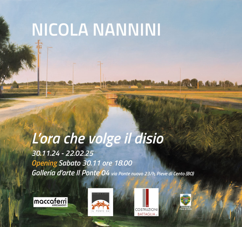 Siamo esattamente a vent'anni dalla nascita dello spazio d'arte Il Ponte 04, inaugurato allora dalla mostra personale Divertissement di Nicola Nannini e oggi celebriamo la ricorrenza proprio con l'artista che lo tenne a battesimo. Una mostra che omaggia il nostro/suo territorio, la sua amata pianura, la campagna, i nostri luoghi e le emozioni che regalano in ogni stagione. Un territorio molto caro a Nicola Nannini.In questi vent'anni abbiamo proposto svariati artisti e organizzato mostre personali e collettive di caratura nazionale, raccogliendo consenso da un pubblico che ci segue sempre più numeroso e che stimola la nostra ricerca della qualità nell'arte contemporanea. Non è possibile citare tutti gli artisti che hanno esposto al Ponte 04, ma li ricordiamo con gratitudine, così come ringraziamo tutto il pubblico e i sostenitori che hanno permesso di realizzare cataloghi di prestigio per arricchire l'offerta culturale e le mostre qui realizzate. Un ringraziamento va inoltre ad una persona che fu la scintilla per la nascita del Ponte 04, inizialmente come associazione culturale, il dottor Graziano Campanini, aiuto fondamentale insieme alla dottoressa Giorgia Govoni per muovere i primi passi nell'organizzazione delle prime esposizioni.Infine un particolare sentito ringraziamento ai miei genitori Gianni e Velia, ai miei fratelli Daniele e Fabrizio, a mia moglie Paola per l'aiuto e il sostegno in tutti questi anni. Andrea MaccaferriDirettore de Il Ponte04