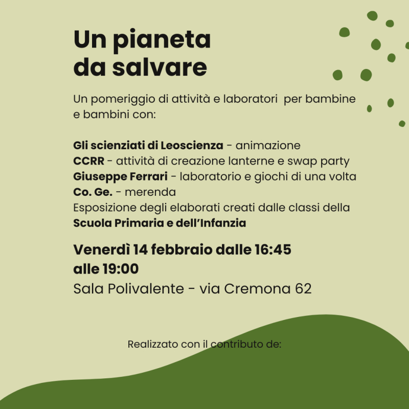 Un pianeta da salvare - Un pomeriggio di attività e laboratori per bambine e bambini con: