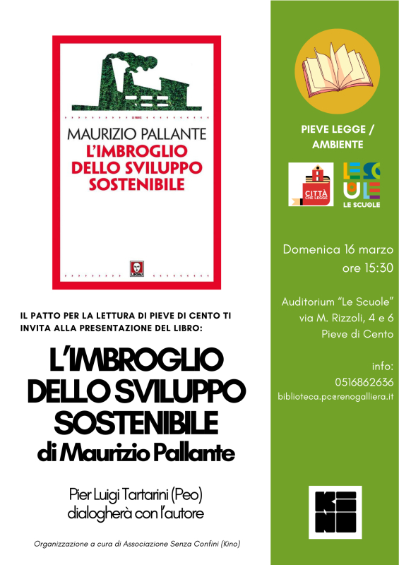 presentazione del libro "L'imbroglio dello sviluppo sostenibile" (Lindau, 2022) di Maurizio Pallante, fondatore del Movimento per la decrescita felice. Pier Luigi Tartarini dialogherà con l'autore.