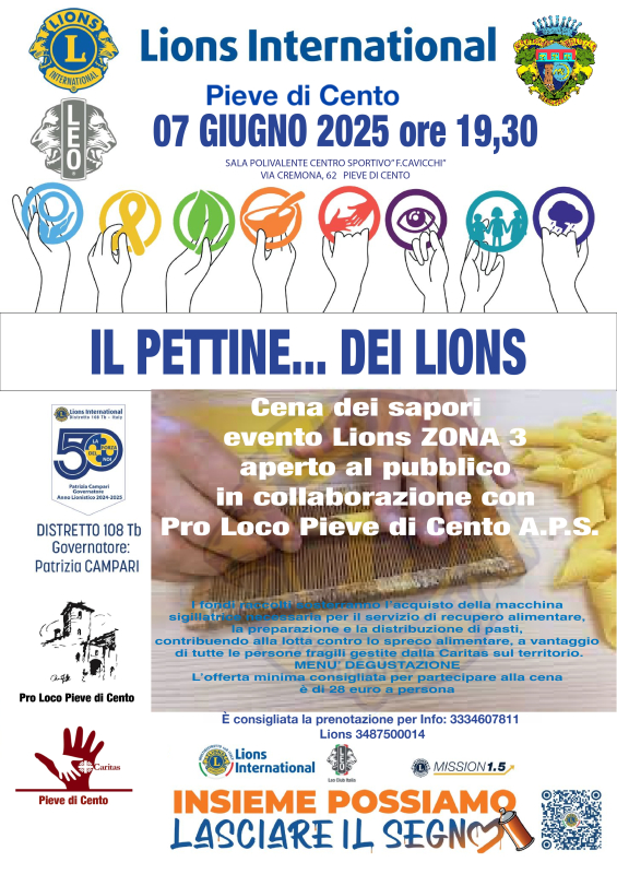 "Cena dei sapori" - Evento Lions ZONA 3 aperto al pubblico in collaborazione con Pro Loco Pieve di Cento A.P.S.