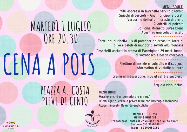 • Home page Scoprire Pieve Agenda Pieve Pagina corrente: Cena a Pois