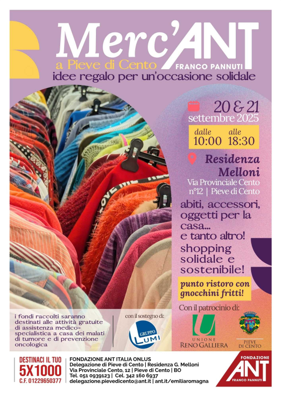 sabato 20 e domenica 21 settembre 2025 presso la Residenza ANT Giuseppina Melloni di Pieve di Cento,