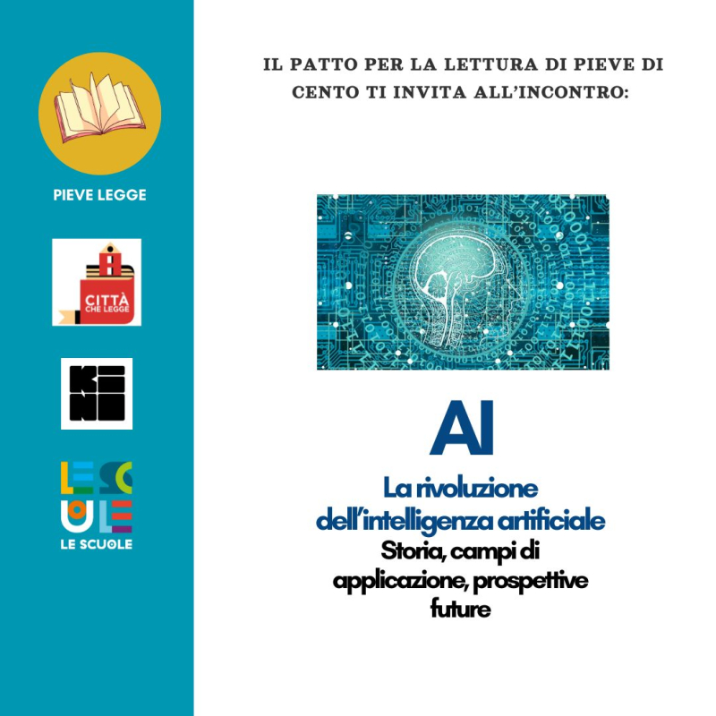 Venerdì 5 dicembre alle 20,45 all'interno del Patto per la lettura si terrà l'incontro AI La rivoluzione dell'intelligenza artificiale: storia, campi di applicazione, prospettive future.