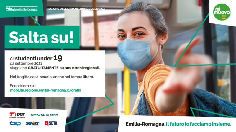 L'iniziativa promossa dalla Regione Emilia-Romagna prevede il trasporto gratuito per i percorsi casa-scuola di studenti e studentesse iscritti alle scuole secondarie di II grado per l'anno scolastico 2021-2022.